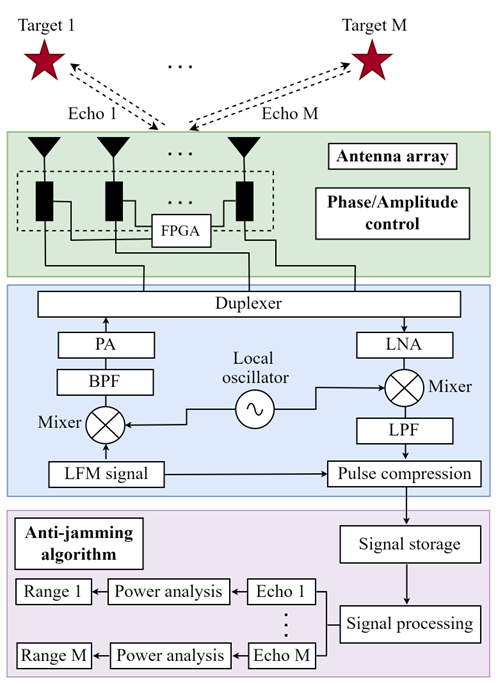 雷达干扰是现代电子对抗的重要研究方向,其中欺骗式干扰是对抗线性调频波形体制雷达的有效干扰方法。通过精确模仿雷达发射信号波,欺骗式干扰可使进入雷达接收机的干扰信号获得与真实目标回波相同的相干处理增益而产生虚假目标。为了大幅降低欺骗式干扰引入的虚假目标能量,实现抗欺骗式干扰检测功能,该课题组提出了一种抗时间调制欺骗式干扰的雷达检测方法。