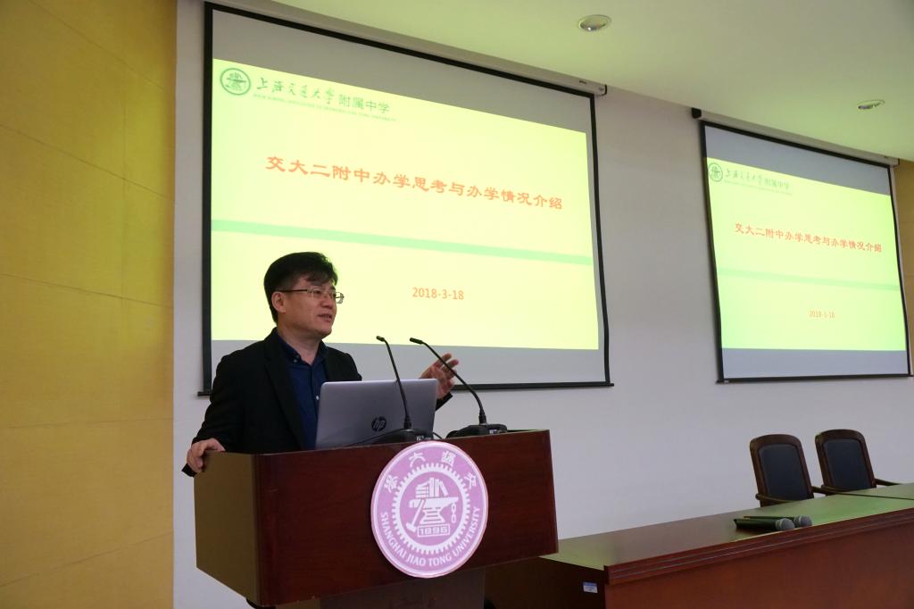 3月18日,由上海交大工会和上海交大附属第二中学共同举办的上海交大二附中2018年春季校园宣讲会在闵行校区东上院100号举行。校工会主席于朝阳,妇委会副主任蔡云泽,交大附中、二附中校长徐向东,交大附中党委书记万晓玲,交大附中闵行分校副校长范红凤、王建飞、党支部副书记施明泉等附属学校领导,以及300余名交大教职工参加了宣讲会。会议由校工会副主席张杰主持。
